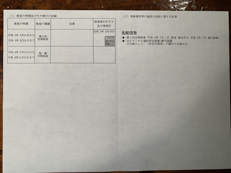 航海設備1式。漁獲設備。着岸設備。発電機設備。無線設備。宿泊設備。